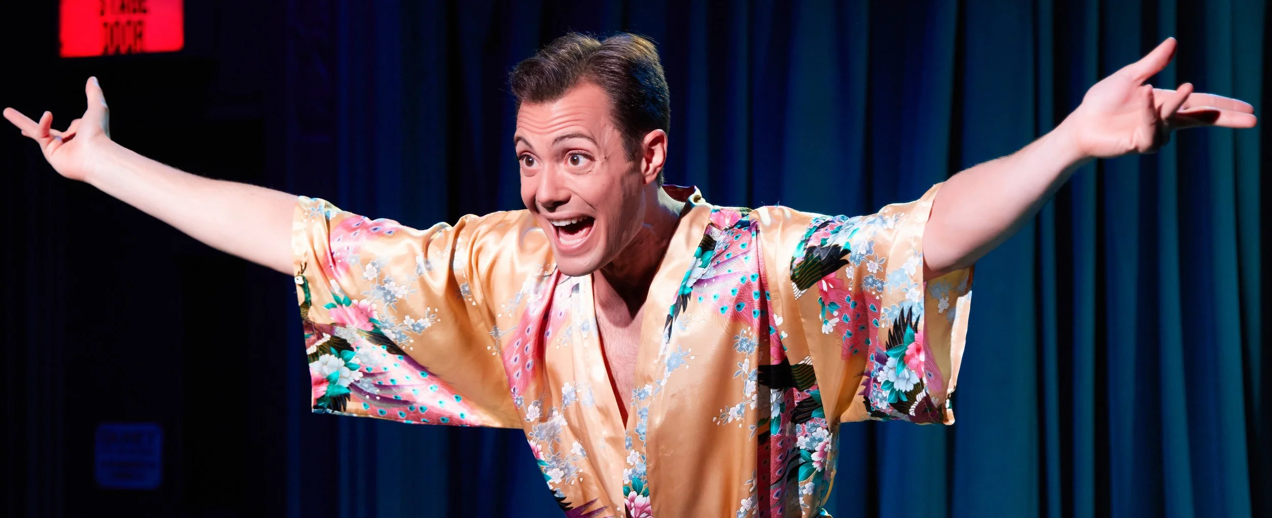D’Astolfo as Derek works the audience.