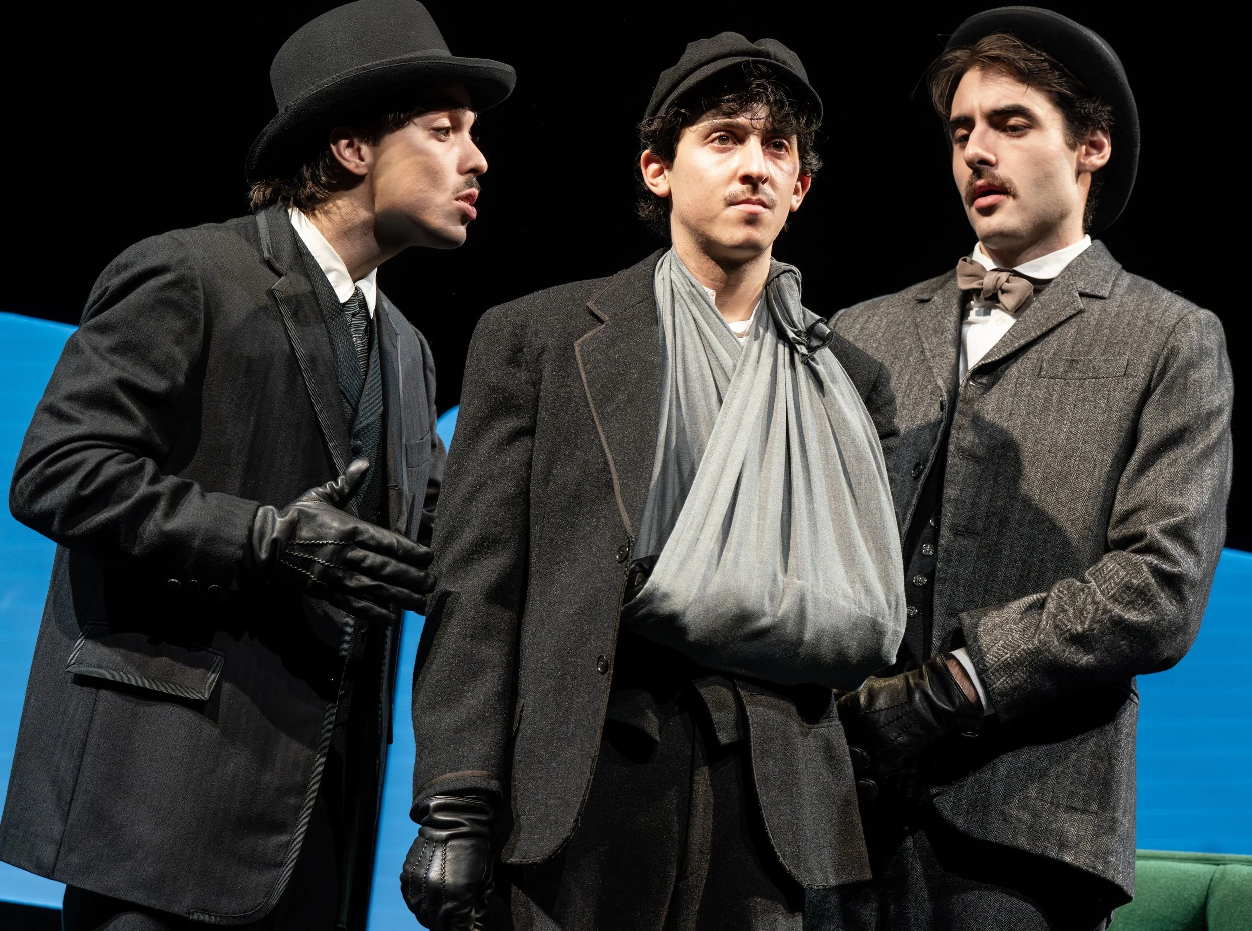From left: Jason Sanchez plays Nedeljko Čabrinović, Jake Berne is Gavrilo Princip, and Adrien Rolet is Trifko Grabez, the assassins of Archduke Ferdinand, in Archduke.