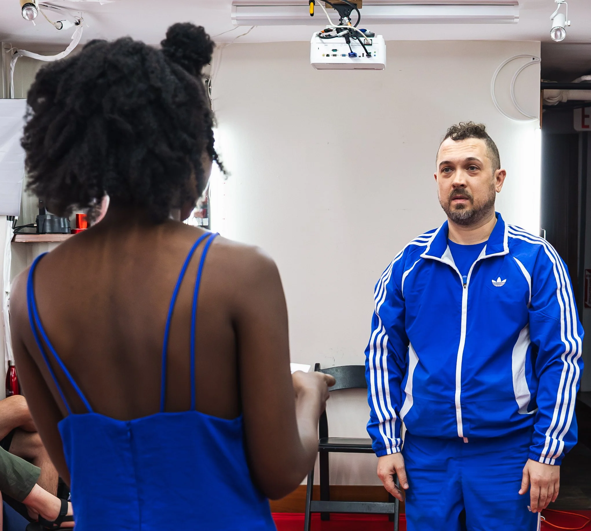 At other times during the show, Holder complains about everything from turning 40 to worrying about his parents to not getting enough job interviews to a single critical comment an acting teacher made in high school. “Therapy session,” therefore, is one way to think of Out of Order. Press materials call it an “interactive parlor game,” and Holder has described it in interviews as “an obstacle course I run myself through while people watch.” It is by only the loosest of definitions a play, and it was originally something Holder did in people’s living rooms. He developed it for theatrical performance with director Skylar Fox.