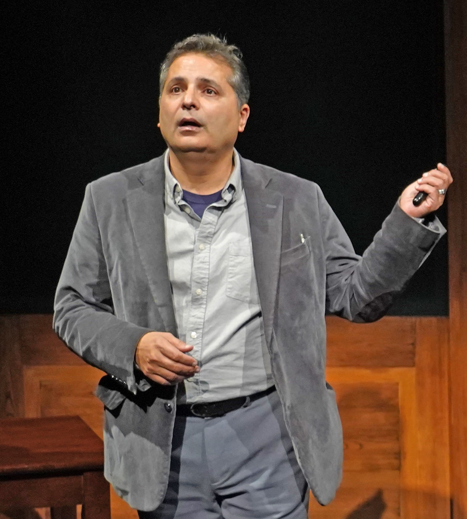 That question is central to Lukesh’s (Firdous Bamji) life and work. He is South Asian, speaks with a British accent, and teaches psychology at an American university. The play opens with one of his lectures, with the audience as stand-ins for his pupils, a conceit the play returns to repeatedly (perhaps a bit too often).