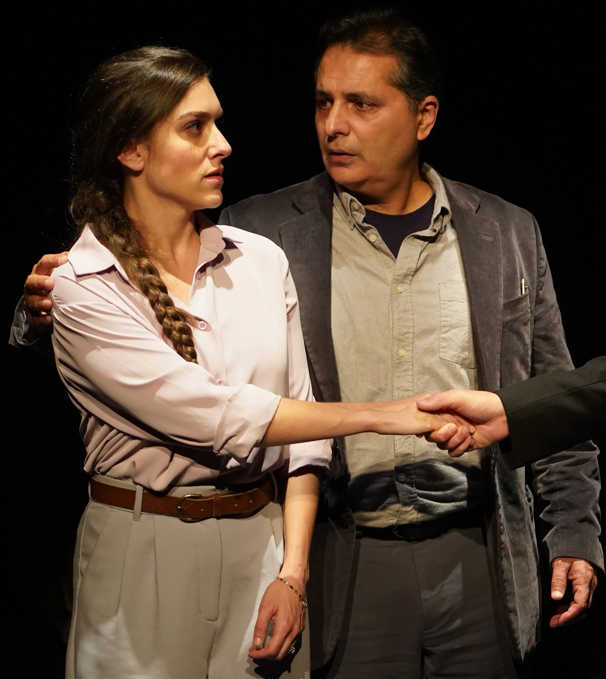 If that sounds like a lot, it is. A number of patrons at 59e59 exited at the intermission, which was even commented upon by one of the actors, in character. That’s a shame, because the production, under Hayley Finn’s excellent direction—she also helmed the show at Theater J in Washington, D.C.—manages to bring Spector’s formidable script to often compelling life, thanks in large part to three committed, and elastic, performers.