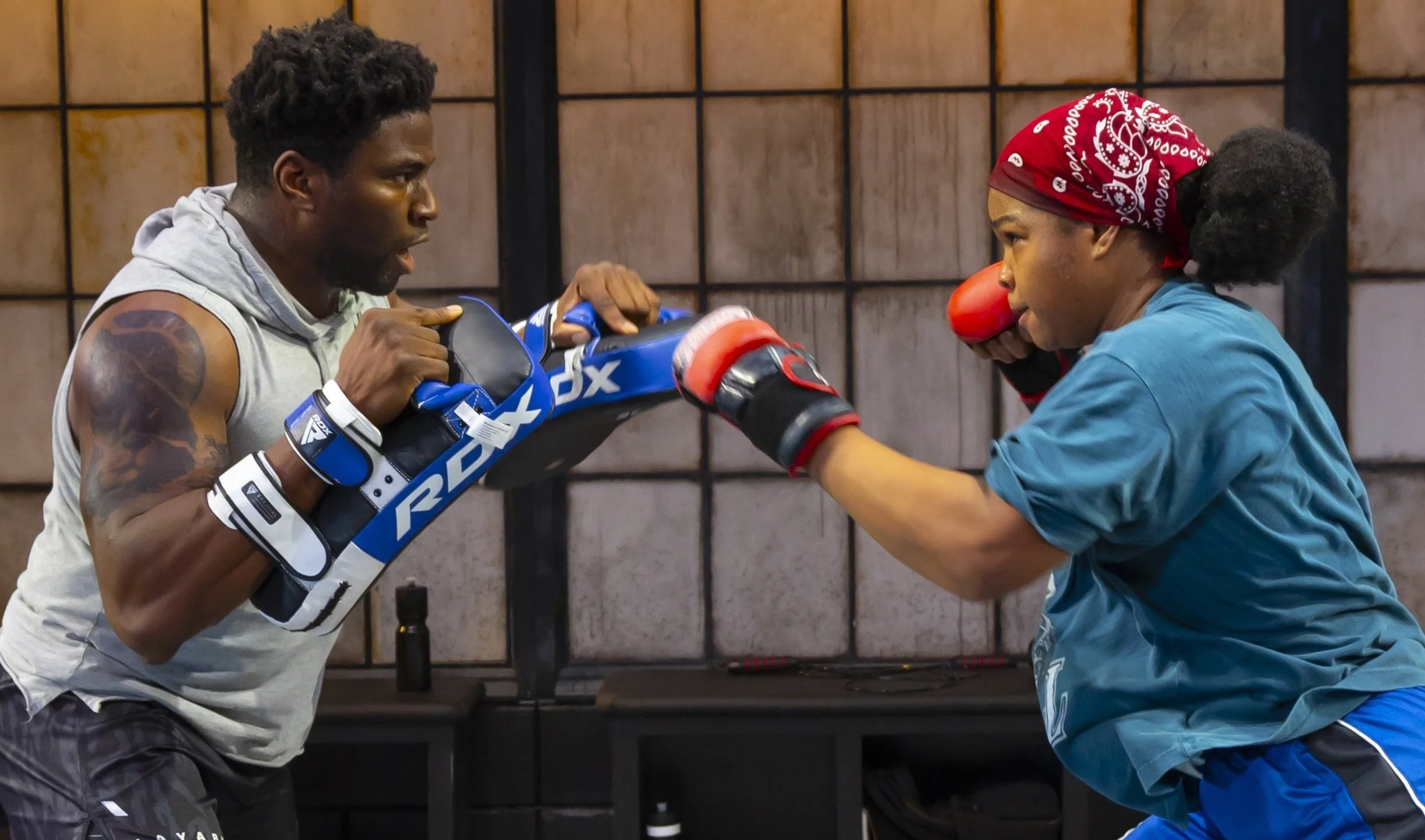 Okieriete Onaodowan (left) as Big, trains his little sister, Lil (Aigner Mizzelle), in Mixed Martial Arts fighting, in Ngozi Anyanwu’s The Monsters.