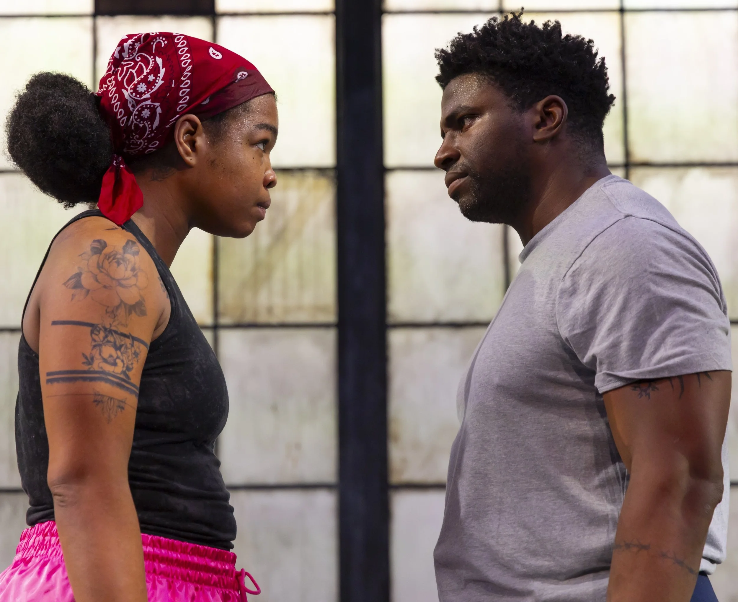 Mixed Martial Arts (MMA) is the ostensible subject of Ngozi Anyanwu’s taut two-hander The Monsters, now running Off-Broadway at Manhattan Theater Club after a fall stint at Two River Theater in New Jersey—but the play’s true combat is emotional. Beyond the excellent choreography and fight direction (by Rickey Tripp and Gerry Rodriguez, respectively), the deeper exhilaration stems from seeing two actors, Aigner Mizzelle as Lil and Okieriete Onaodowan as her big brother Big, deliver beautifully realized performances.