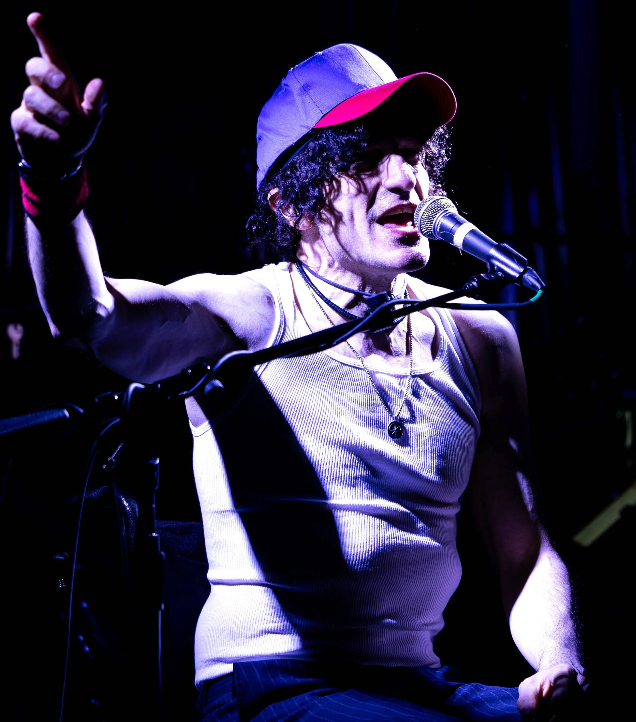 Despite limited mobility due to a spinal-cord stroke, Malin delivers an exuberant performance in Silver Manhattan at the Bowery Palace. Photographs by Ehud Lazin.