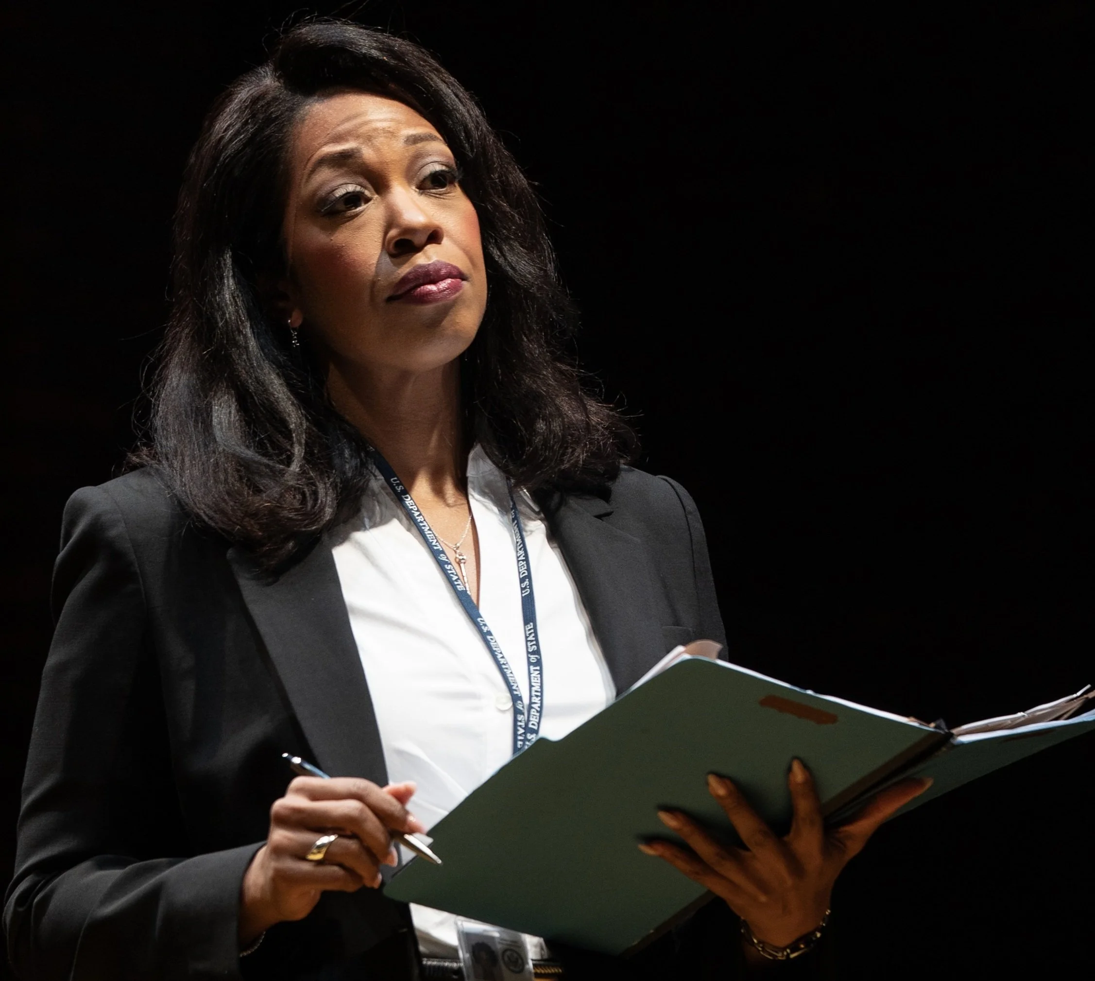 Portraying real-life diplomats and public servants is no small feat, yet the ensemble rises to the challenge with assurance. While all acquit themselves well, several performances stand out. Guevara is especially effective as Reynoso, embodying the Dominican-born diplomat with intelligence, resolve, and flashes of hard-earned fire. Anderson, as Cheryl Mills, brings understated sharp wit and authority to her role as Hillary Clinton's chief of staff. As Judy Gross, the wife of a wrongly imprisoned American, Deirdre Madigan wears her indignation openly, delivering pointed rebukes of Reynoso’s diplomatic restraint—“You are just another Washington politician, spinning the truth … at the expense of Americans like Alan”—with bracing directness. Meanwhile, Domingues brings a cool, measured presence to Zúñiga, shaping him into a seasoned State Department insider whose skepticism provides a steady counterpoint to Reynoso’s idealism.