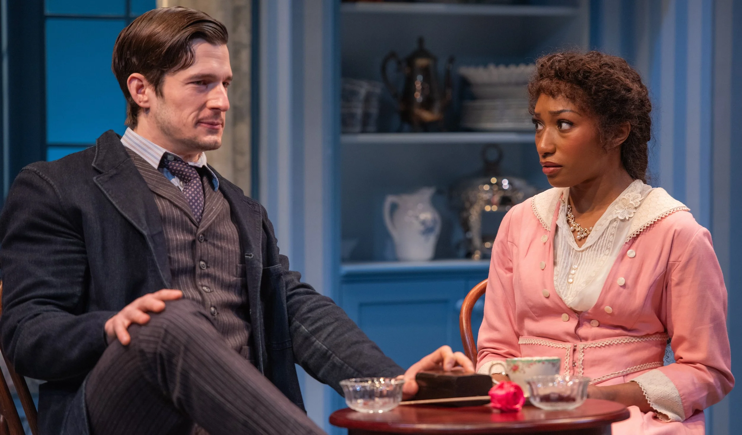 Virginia, a terrific Cassia Thompson in her Off-Broadway debut, sees through the family’s disparagement of Zack and understands his essential goodness. Zack’s decency can get him into trouble, though, such as in a romantic misunderstanding with Martha Wrigley (played by Grace Guichard with comic perfection), which is then exploited by her father, Joe (an excellent Sean Runnett), a worker who is mistreated by Mrs. Munning and Paul and is seeking revenge. Kindall Houston Almond’s period costumes help subtly establish the class differences at play.